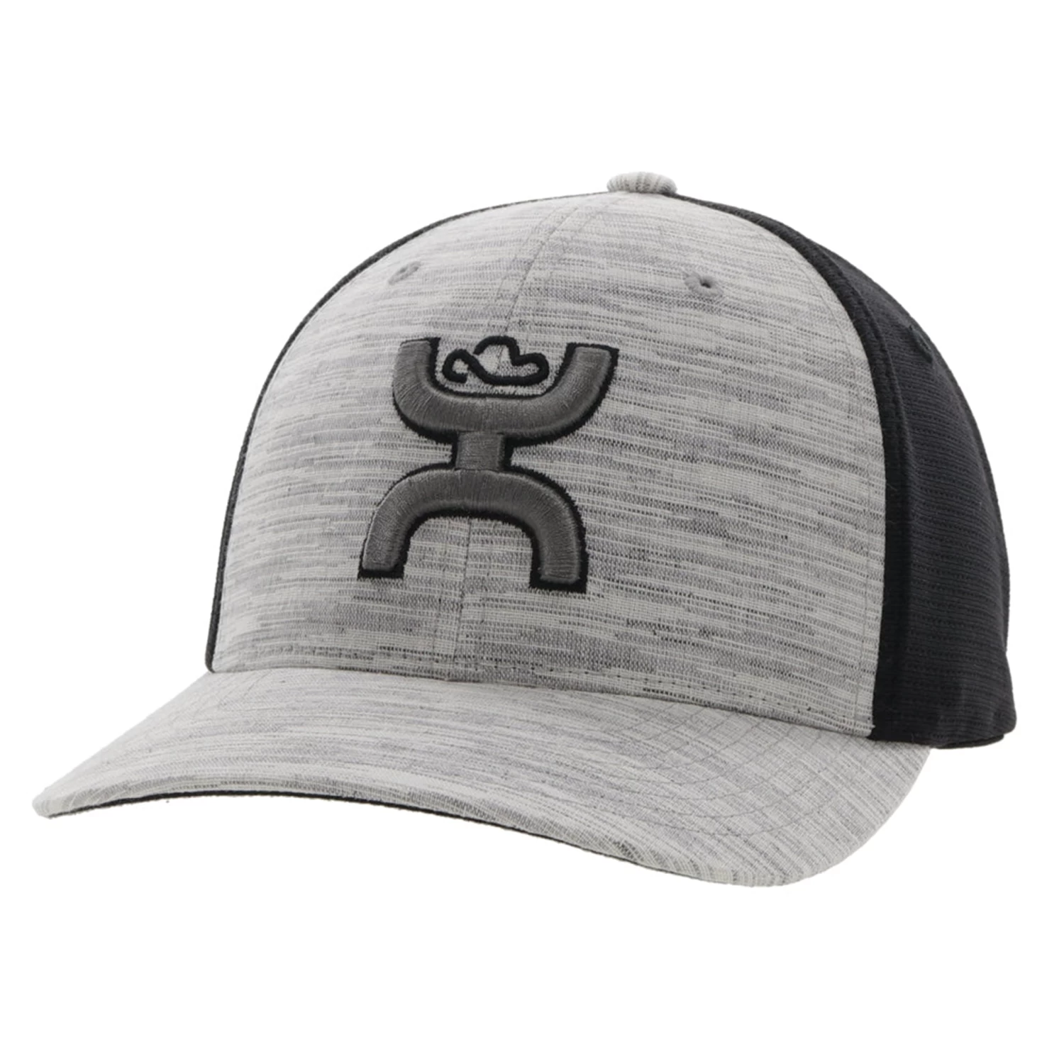 Light grey and Medium grey patterned fabric on front and bill. Black mesh back with FlexFit headband to comfortably snug to your head. Available in two sizes (S/M) (L/XL). Embroidered Puffed dark grey Hooey Up logo.